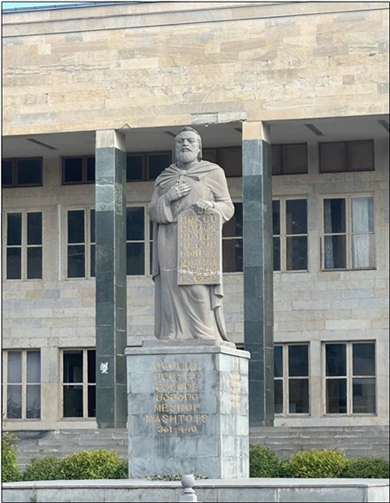 조지아와 아르메니아 국경 지역에 세워진 아르메니아의 세종대왕인 메스롭 마스톳츠의 동상이다. 조지아의 국경도시인 아할칼라키에 위치한다. 기독교 국가인 아르메니아와 조지아의 우정을 상징해서 메스롭의 동상을 세워 놓았을 수도 있고, 일설에 의하면, 아르메니아의 문자를 창제한 후, 조지아의 문자를 만드는 과정에서 도왔다는 입장도 있는 것을 볼 때, 복합적인 이유로 국경 도시에 설립했을 가능성이 높다. 메스롭이 아르메니아 문자를 만드는 일에 앞장 섰기 때문에, 실크로드에 산재한 민족들이 이름만 남기고 흔적도 없이 사라져간 일들이 비일비재하는 상황에서 민족적, 신앙적 정체성을 지키는데 크나큰 역할을 했다. 이것은 문자를 가진 조지아도 마찬가지다.