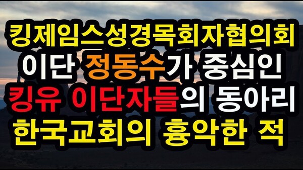 기사 킹제임스성경목회자협의회는 이단 정동수가 중심인 킹유 이단자들의 동아리 한국교회의 흉악한 적 김홍기 교수 입력 2025.11.10 11:34 댓글 0 SNS 기사보내기 다른 공유 찾기 기사스크랩하기 인쇄 이 기사를 공유합니다 닫기 본문 글씨 키우기 가 본문 글씨 줄이기 저작권자 © 교회와신앙 무단전재 및 재배포 금지 김홍기 교수 webmaster@amennews.com 다른기사 보기 관련기사 킹유 이단 정동수 왈, "예수님을 범죄자로 만들기 위해 마귀가 마 5:22을 변개시켰다" 위 기사를 읽고 후원을 신청합니다. 10000원후원합니다 20000원후원합니다 50000원후원합니다 100000원후원합니다 정기후원 × 후원계좌번호 국민은행 607301-01-412365 교회와신앙 × 후원계좌번호 국민은행 607301-01-412365 교회와신앙 × 후원계좌번호 국민은행 607301-01-412365 교회와신앙 × 후원계좌번호 국민은행 607301-01-412365 교회와신앙 주요뉴스 이재철이 “기성교회 목사들이 은퇴하며 전별금과 집을 받고 또 죽을 때까지 봉급 따로 받는다”는 비판을 보고 (4) 이재철 씨가 '100주년기념교회'에서 기성교회와 다른 소위 ‘장로·권사호칭제’를 만들어 사용하는 것은 부당하고 모순된 짓이다 (3) 합동 총회를 맹비난한 킹제임스성경목회자협의회의 성명서는 킹유 이단자들의 자백서요 허접한 사기(詐欺) 문화 소의 노래 그저 가을이면 한글, 그 빛나는 선물
